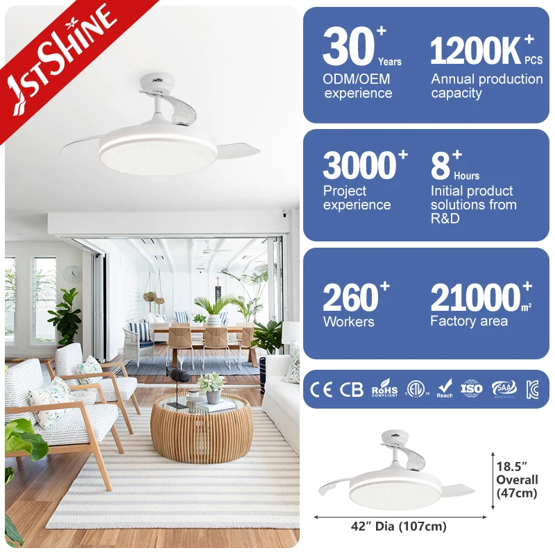 1stshine LED Ceiling Fan Fancy Design 3 Color LED Lighting Retractable Ceiling Fan with Remote Control